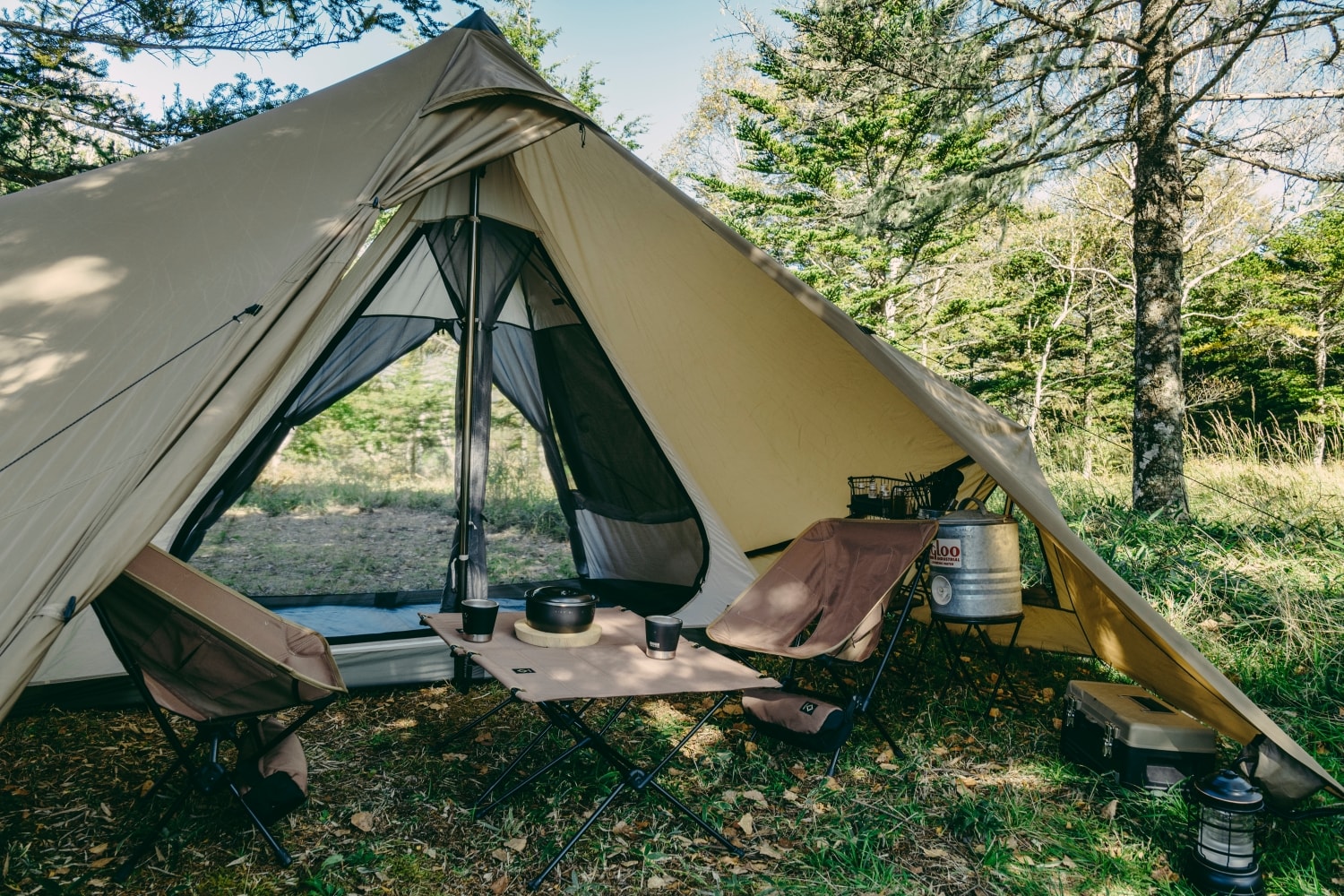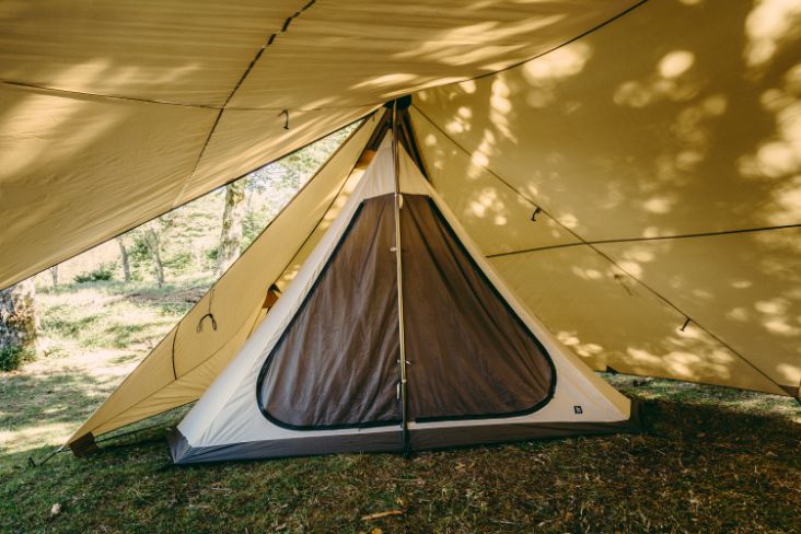 若搭建在极际1内,只占据外帐的半侧空间。双人露营时,可以同时兼顾睡眠区与活动区,营造简约舒适的小型帐氛围。