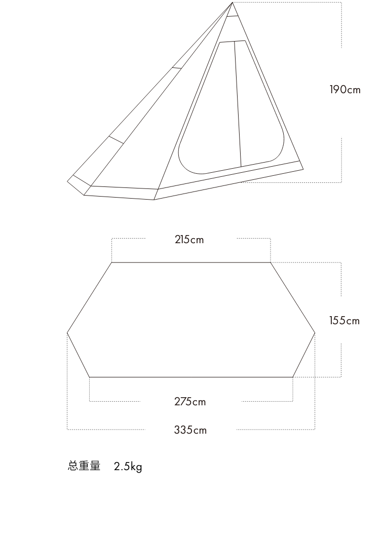 帳壁:68D聚酯纖維塔夫綢 / 帳底:150D聚酯纖維牛津布?PU涂層(耐水壓1,500mm)