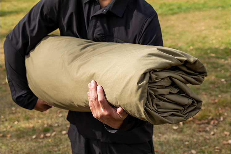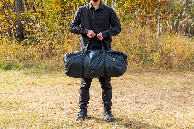 包装袋可以将帐杆与帐体全部收纳进去。为了与化纤材质的版本进行区分,TC版本的收纳包装颜色为黑色。