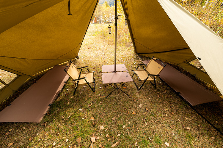 单杆帐最大的缺点是可利用空间小,所以增加侧杆的设计极大地解决了这一问题。双人用餐时即使面对面落座,也可以享受既舒适又宽敞的二人空间。