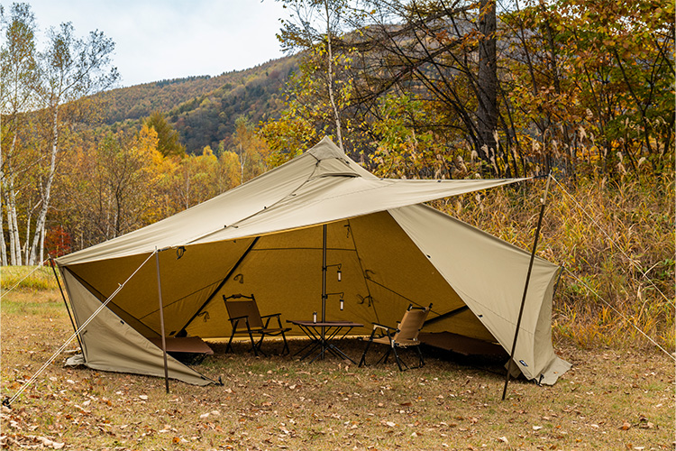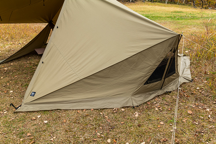帐底周围配备防风裙,能够防止外部的冷空气进入。为了防止与地面接触的部分被轻易弄脏,防风裙采用易清洁的聚酯纤维材质。