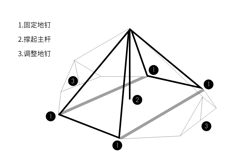 只需利用定位带先将帐底四个角固定成长方形,然后使用主杆撑起帐顶,便能够轻松的搭建起来。帐底为易分辨的对称多边形,设营简单易上手。