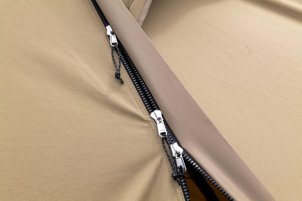 適合秋冬季節(jié)使用的混紡滌棉版本的極際2 TC。主出入口采用三顆可調(diào)節(jié)開口位置的樹脂材質(zhì)拉鏈頭。