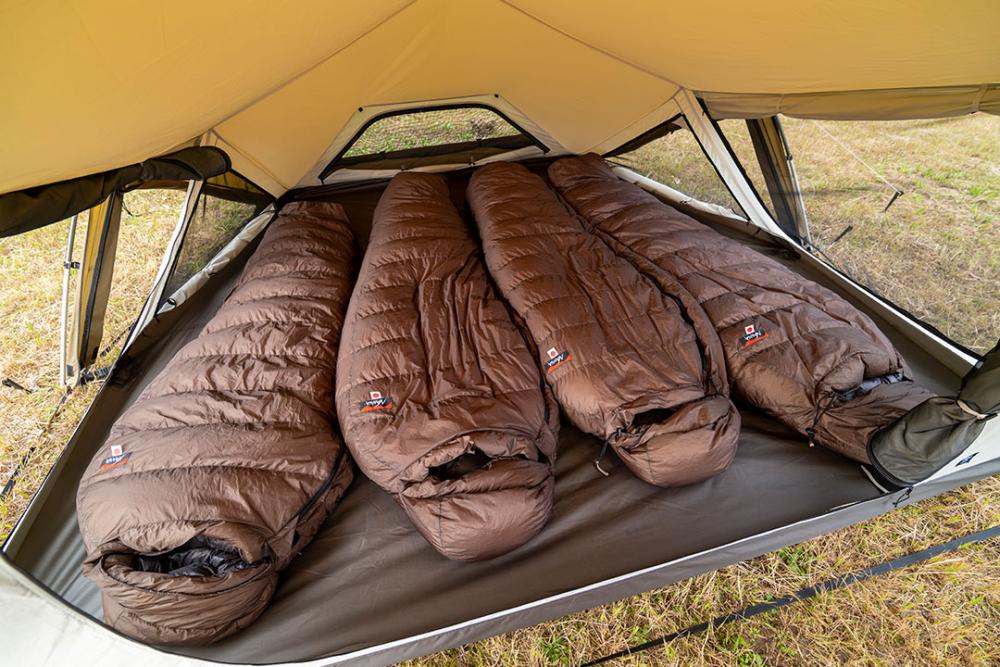 前厅及侧门均可打开,根据营地气温与风向可以随意调整室内温度。另外,将所有门帘都打开时,足不出帐即可欣赏到外面美景,十足的开放感令人心情愉悦。