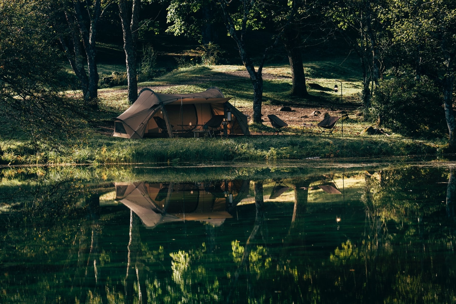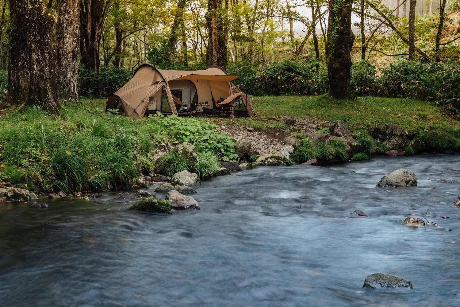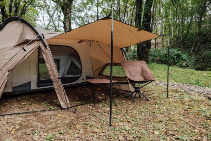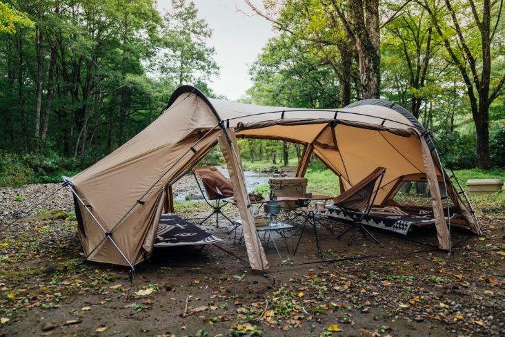 将前后的门厅及两侧门帘全部卷起之后,可以在开放感十足的空间内尽享自然美景。同时前厅的活动区也有充分的空间能够放置双人桌椅等露营用具。