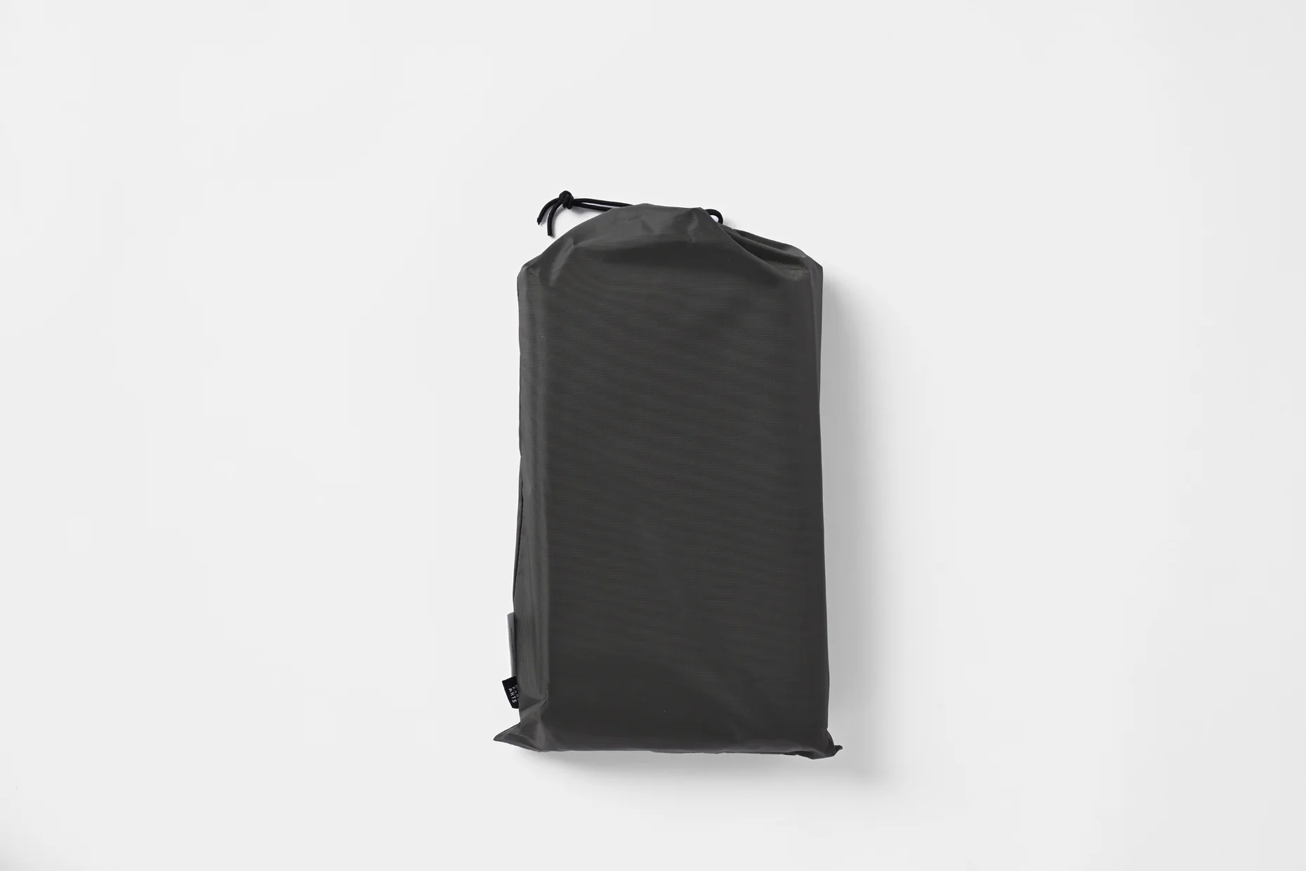 折叠后的地布可放进附带的收纳袋中携带。由于体积较小,也可以放进帐篷收纳袋中一起携带。