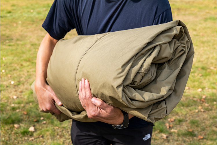 包装袋可以将帐杆与帐体全部收纳进去。为了与化纤材质的版本进行区分,TC版本的收纳包装颜色为黑色。